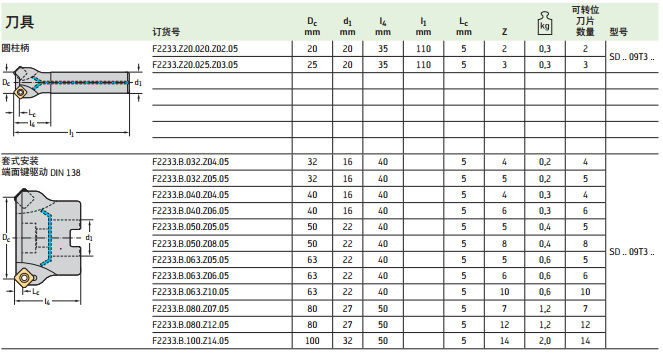德国瓦尔特铣削刀具F2233.Z20.025.Z03.05面铣刀 全新原装