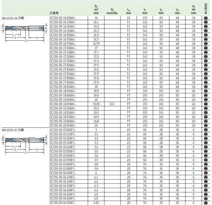 瓦尔特钻头全系列订货 DC150-05-06.800F1-WJ30RE 加工耐热合金