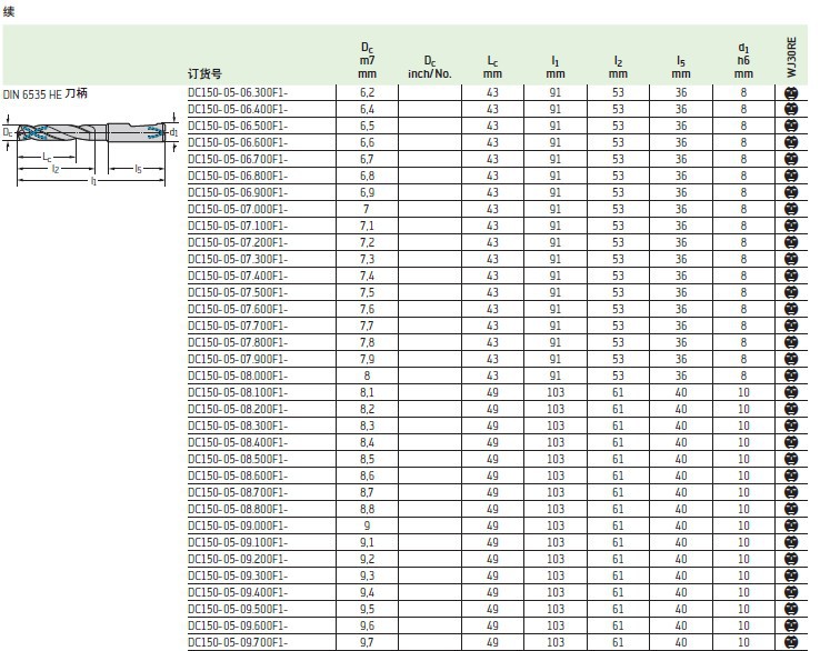 济南瓦尔特内冷钻头 DC150-05-06.700F1-WJ30RE 加工钢件铸铁