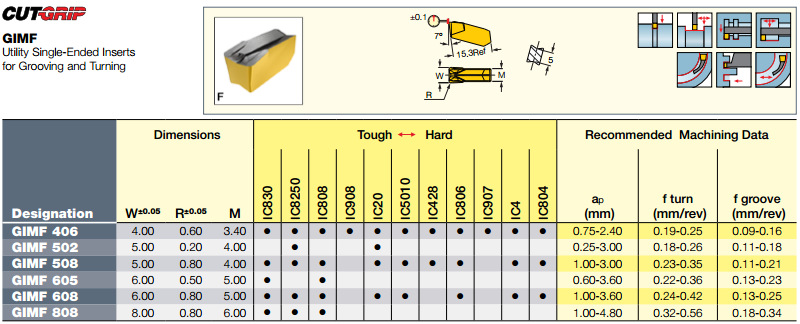 | IC228 | IC228 合金钢,铝合金,铸钢,奥氏体不锈钢,碳钢,铜合金,稀有合金 粗&半粗,低转速,高进给,不规则切削 | PVD涂层 |