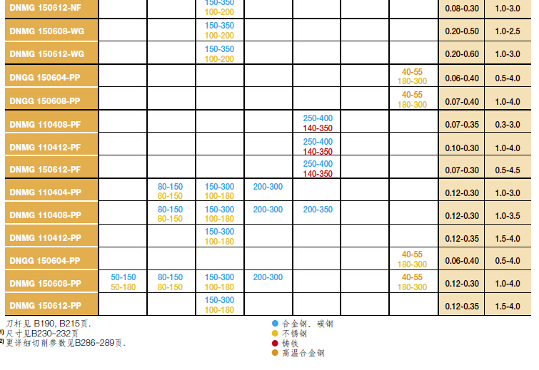 | P.M | IC250 | IC250 PVD 涂层 P15-P35,M20-M40 基体表面附有TiN涂层材质,PVD涂层。用于在高进给,中-高速切削条件下,钢和不锈钢的铣削和螺纹加工。 |
