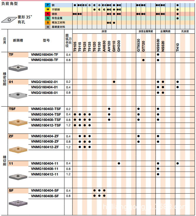 泰珂洛涂层车刀片VNMG160408-SF T6120日本泰珂洛刀具代理