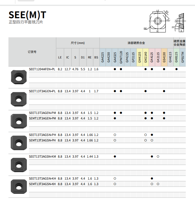 金鹭45°面铣刀片 钛合金加工 SEMT13T3AGEN-PM GS4130 铣削刀具