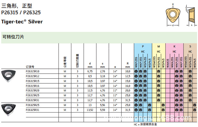 | P.K | WKP25S、WKP35S | WKP25S、WKP35S 适合于钢和铸铁加工 |