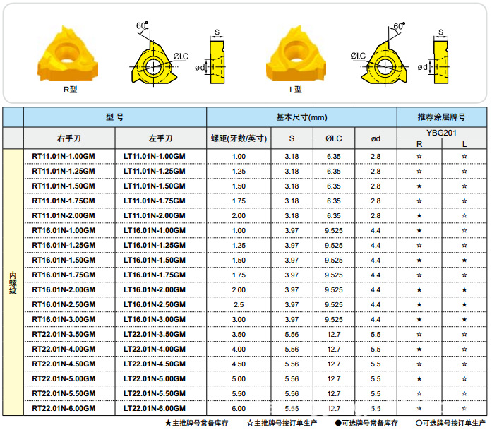 全新株洲螺纹车刀片YBG201 RT11.01N-1.25GM内螺纹刀片