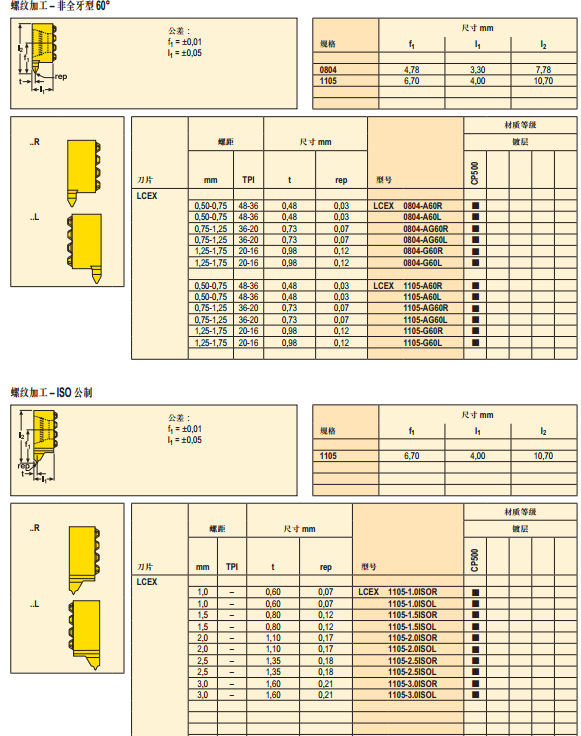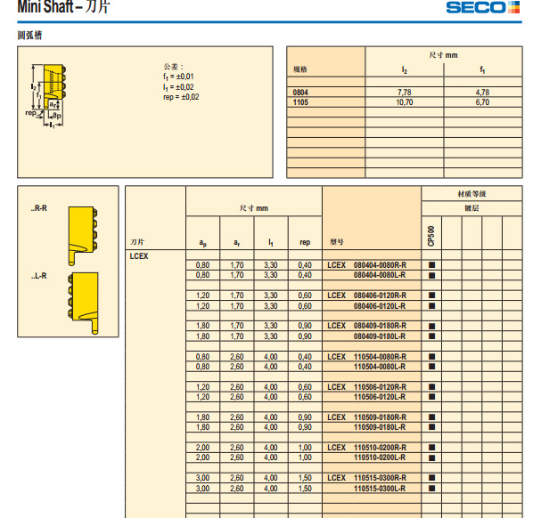 | K | MK2050 | 用于铸铁的PVD镀层材质等级,改善刃口完整性首选用于所有铸铁材料。尤其适用于铣削加工,干式或湿式切削。 |