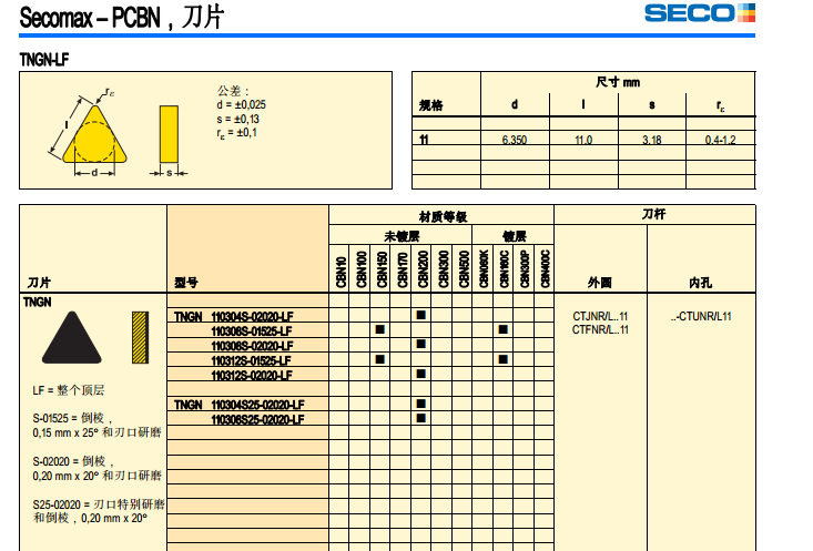 | S | TS2000 | TS2000髙硬度的细颗粒耐磨材质等级针对用于精加工髙温合金和钛合金,也适用于许多不锈钢。 |