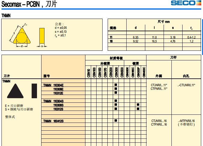 | S | TS2000 | TS2000髙硬度的细颗粒耐磨材质等级针对用于精加工髙温合金和钛合金,也适用于许多不锈钢。 |