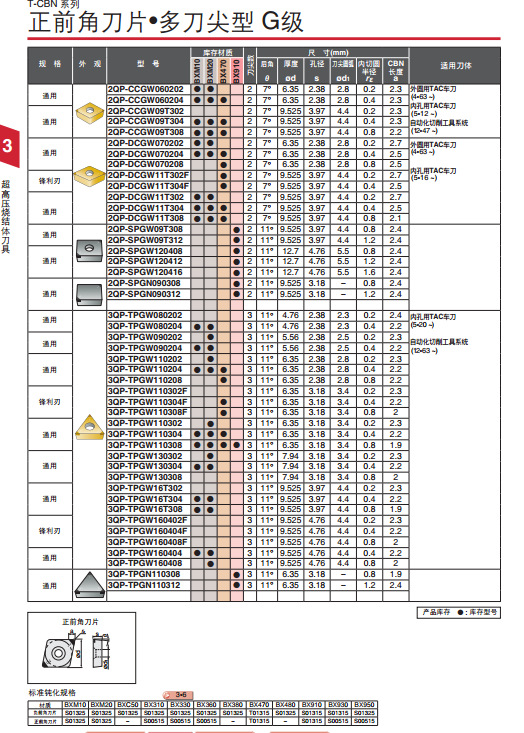 | H | BX330 | BX330 淬火钢精加工用材质 用特殊粘结剂结合微粒CBN,刃口保持性良好,在精加工时发挥优良的性能 | 超高压烧结体T-CBN |