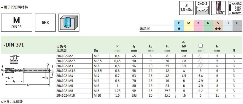 德国瓦尔特 高速钢丝锥204102-M8全系列瓦尔特刀具